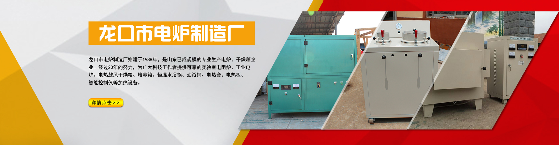 龍口市電爐制造廠始建于1988年,為山東規(guī)模專業(yè)生產(chǎn)電爐、干燥箱企業(yè)。經(jīng)過20年的努力,為廣大科技工作者提供可靠的實(shí)驗(yàn)室電爐馬弗爐灰吹爐實(shí)驗(yàn)電爐工業(yè)電爐試金爐箱式電阻爐臺(tái)車式電阻爐、電熱鼓風(fēng)干燥箱、培養(yǎng)箱、恒溫水浴鍋、油浴鍋、電熱套、電熱板、智能控制儀等加熱設(shè)備。產(chǎn)品暢銷國內(nèi)各大院校科研機(jī)構(gòu)、工廠礦山、以良好的產(chǎn)品質(zhì)量,完善的售后服務(wù)受到了客戶的好評(píng)。 公司擁有一批長期從事設(shè)計(jì)、研制的高級(jí)工程師和專業(yè)技術(shù)人員。與國內(nèi)眾多科研院所合作開發(fā)具有世界水平的各種非標(biāo)特種加熱設(shè)備,今后我們將不斷努力,依據(jù)客戶的需要,改進(jìn)完善產(chǎn)品性能和檔次,我們忠心期待您的指導(dǎo)和支持。 本廠設(shè)有儀器公司、化玻公......